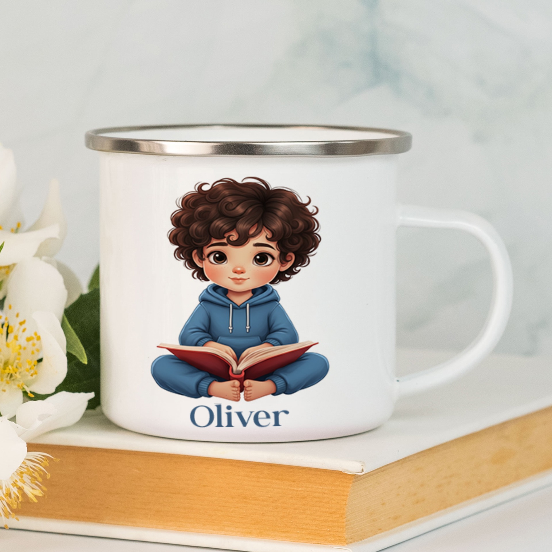 CHLAPEC S KNIHOU 2 smaltovaný hrnček s ľubovoľným menom