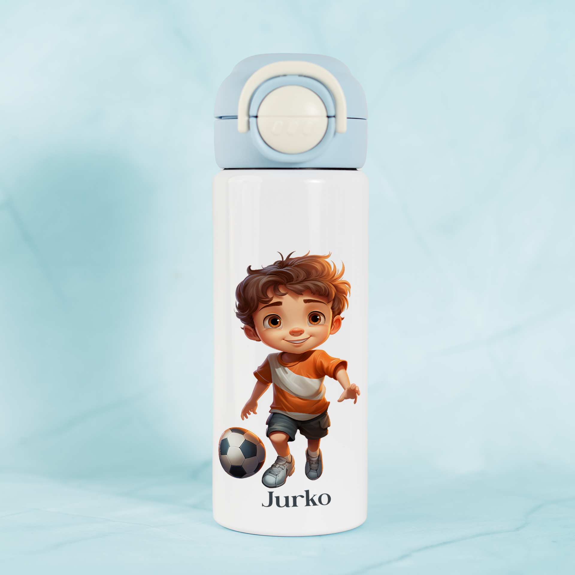 FUTBALISTA termoska so slamkou (modrý vrchnák) s ľubovoľným menom pre deti