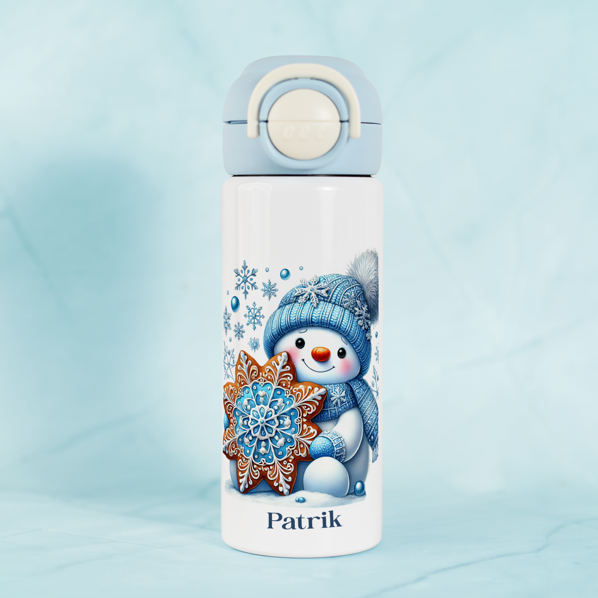 SNEHULIAK 2 nerezová termoska so slamkou (modrý vrchnák) s ľubovoľným menom pre deti