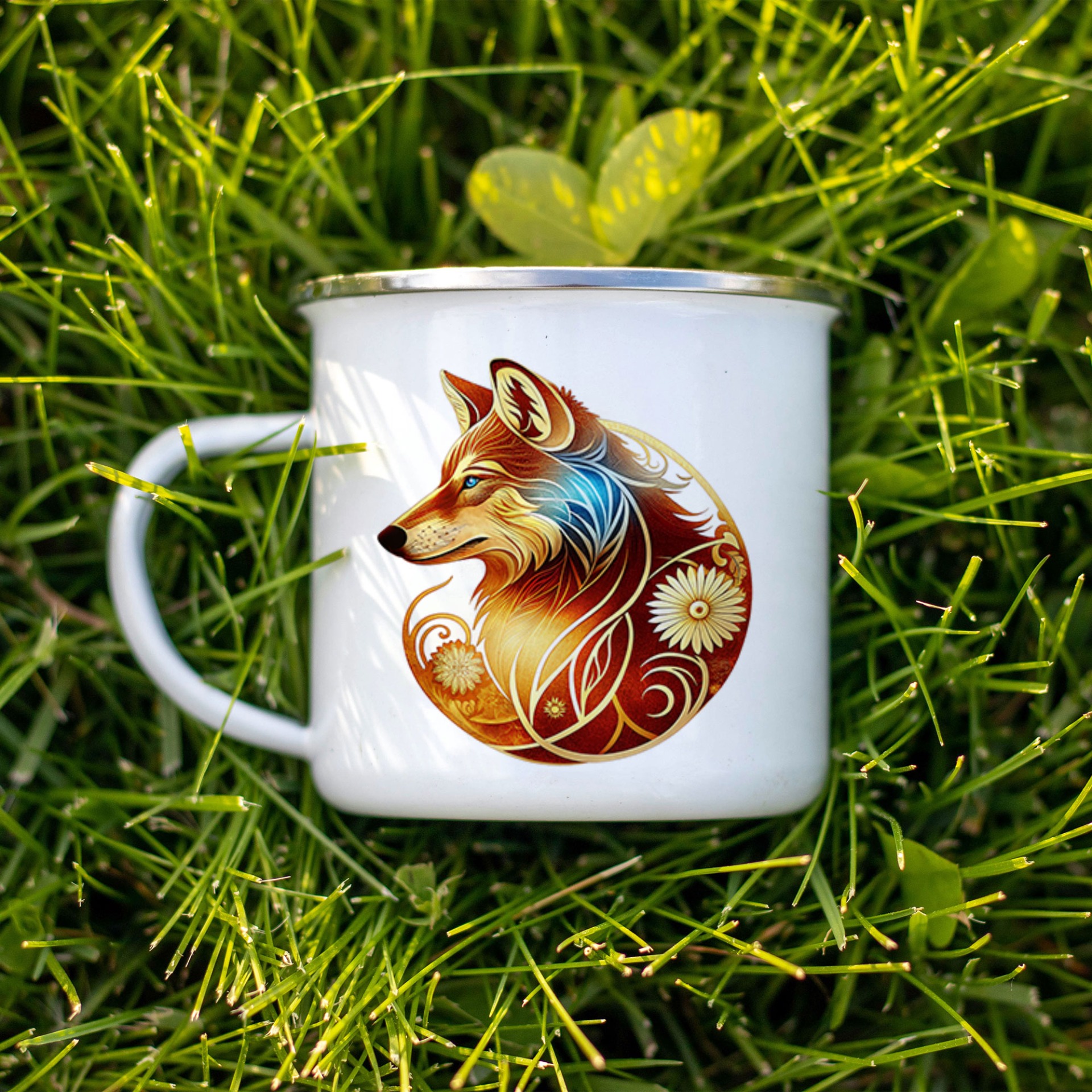 Biely smaltovaný hrnček so strieborným lemom